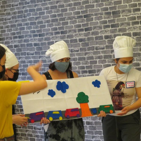 Lunchtown / La Ciudad de los Almuerzos is a participatory project geared to pre-schoolers that focused on emotional literacy, being a good friend, and supporting community. In this program, created and presented by Marcela Artunduaga, Ariel Mombrea, and Leslie Thompson, students took on the roles of food trucks ready to feed a hungry town. The food trucks had to work as a community to include new members of the group, create emotional safety for their friends, and solve the mystery of the missing ingredients.